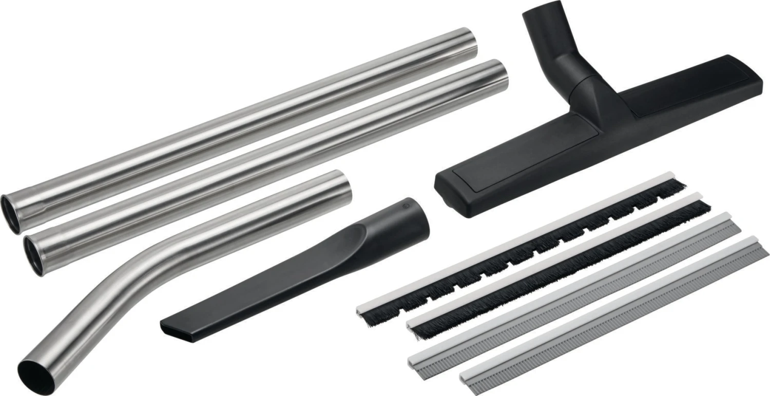 Transport facilité – de grandes roues, une barre de poussée intégrée et un réservoir robuste en acier inoxydable permettent à cet aspirateur de chantier de résister aux conditions réelles du chantier