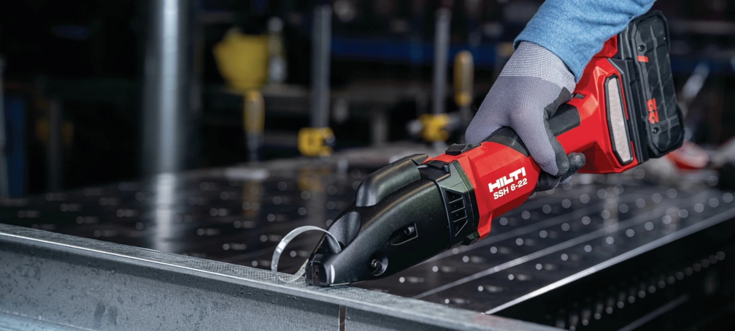 Découpe de profilés et tôles en acier doux ou galvanisé jusqu’à 2,5 mm d’épaisseur – lames SSH CS Hilti recommandées (plusieurs versions disponibles)