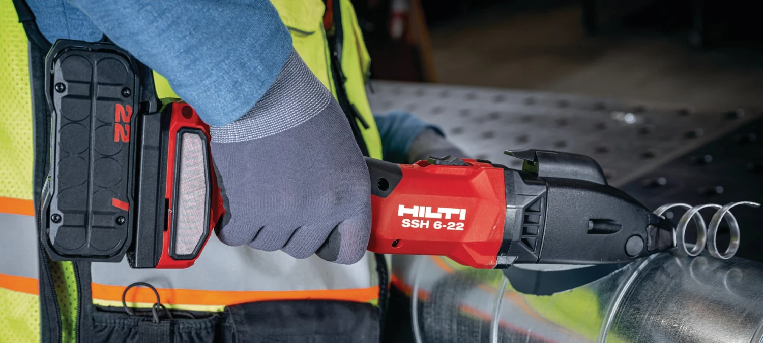 Découpe de gaines spiralées et de conduits de ventilation pour CVC jusqu’à 4 x 0,9 mm – lames SSH CD Hilti recommandées