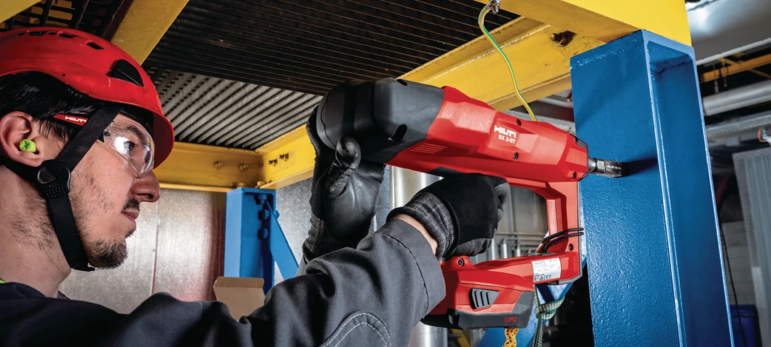 BasĂ© sur la technologie de clouage sans combustion Hilti de deuxième gĂ©nĂ©ration – pour une fixation plus fiable et de grande qualitĂ© des goujons filetĂ©s X-BT dans l’acier