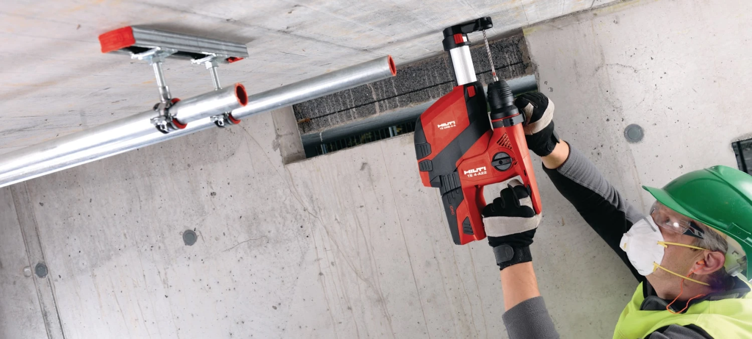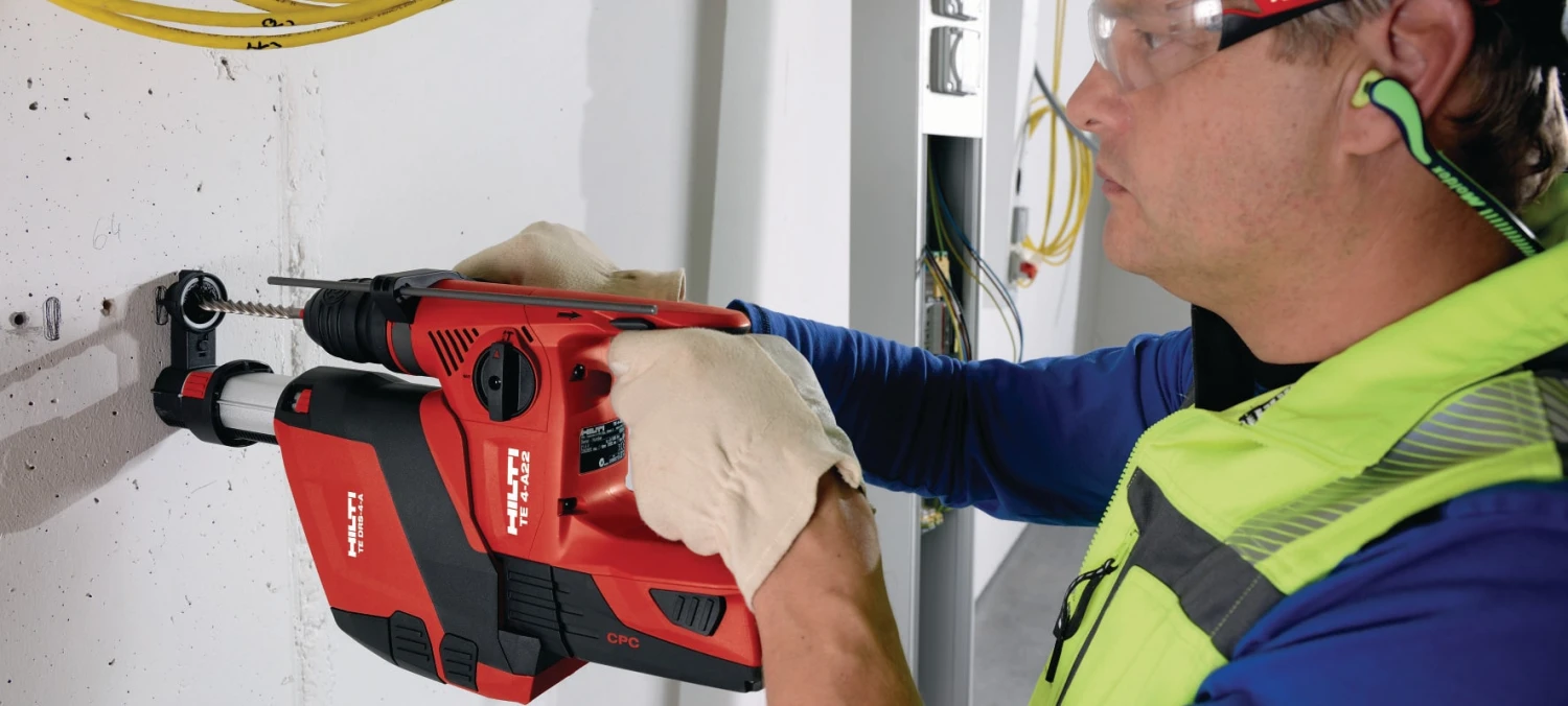 Perçage sans poussière dans le béton grâce au récupérateur de poussière intégré (DRS-4-A)