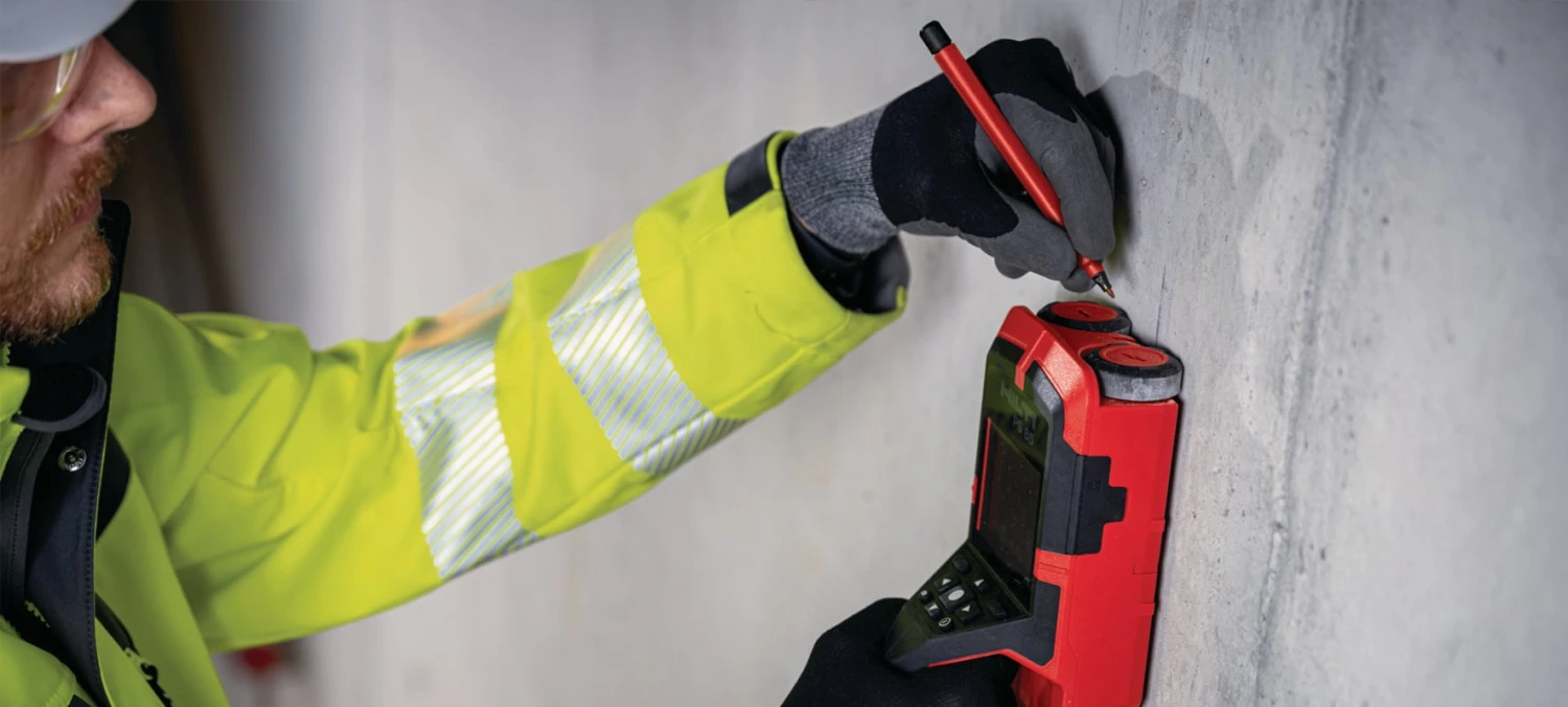 Localisation d’objets encastrés pour la prévention des chocs lors du forage, du carottage, de la découpe ou du rainurage (jusqu’à 3-3/8” de profondeur, selon le matériau) sur le mur